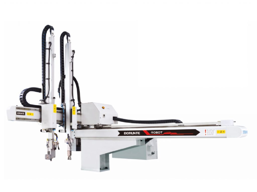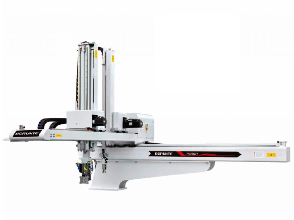 machine for take-out products and aprues. Vertical arm is telescopic stage.
